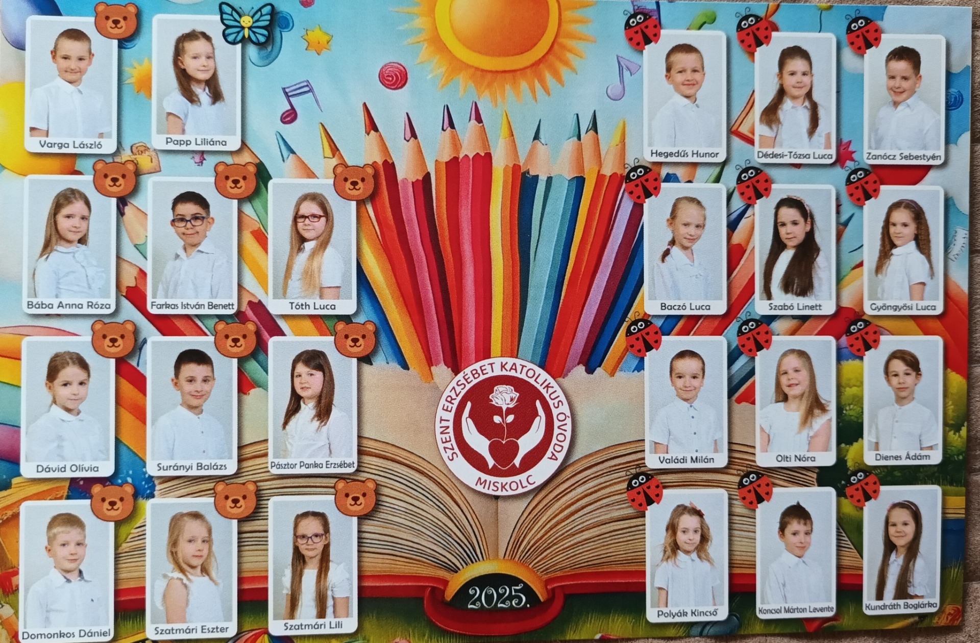 Tapasztalt, szakmailag felkészült pedagógusaink segítségével játékos formában készítjük fel a ránk bízottakat az iskolára. Az óvodás évek hamar elrepülnek, de mi a Szent Erzsébet Katolikus Óvodában arra törekszünk, hogy ezen időszak hittel teli, élményekben gazdag legyen, szeretetteljes, egészséges, esztétikus, kulturált nevelési közegben teljen, annak érdekében, hogy a bennük lévő lehetőségek, értékek kibontakozzanak. Az óvodás kor végén örömmel, magabiztosan, megfelelő érettséggel álljanak az iskolai feladatok elé.