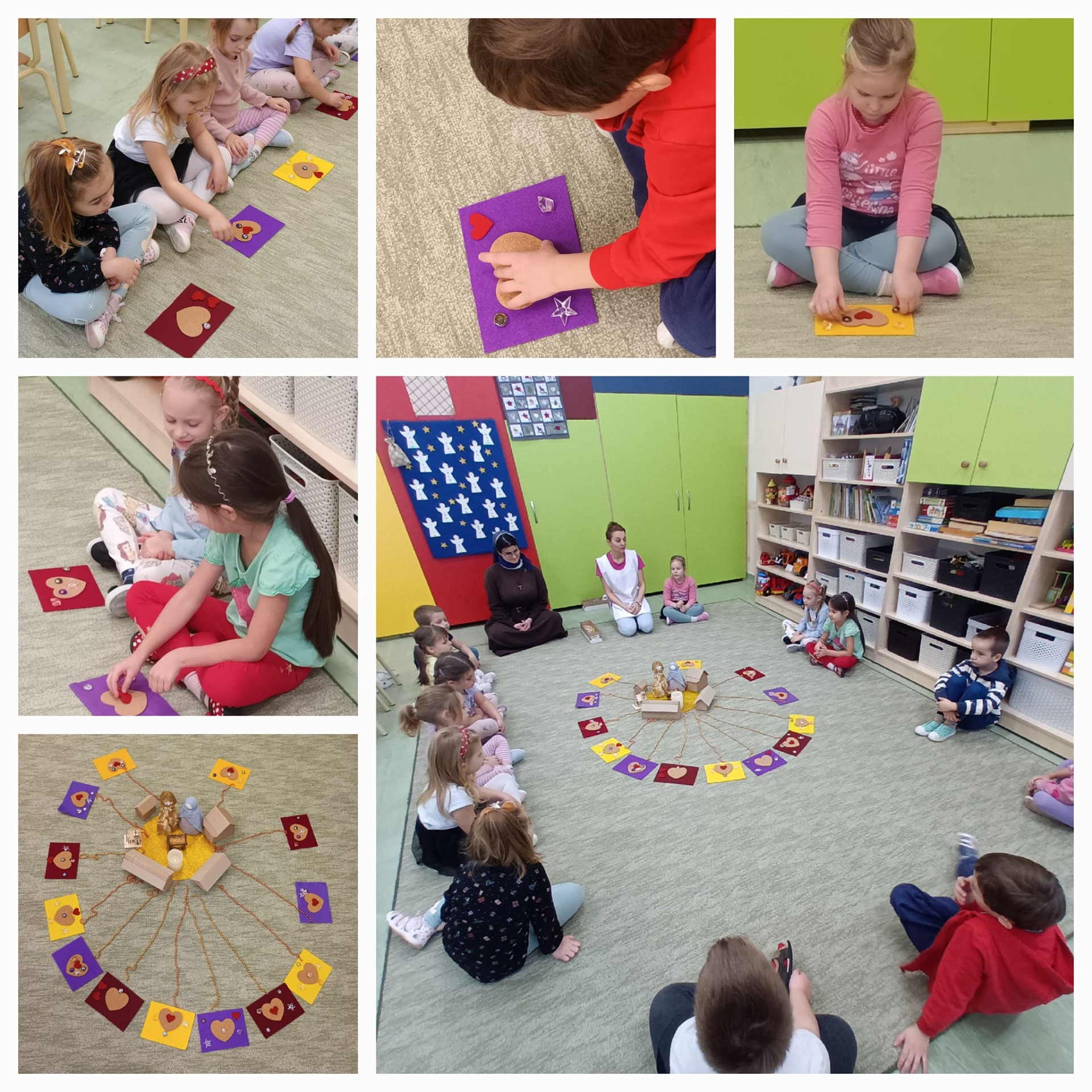 Előtérbe került a lelki percek tevékenység során Franz Kett pedagógiai módszere is. A közös alkotással, különféle anyagokból és eszközökkel csodaszép padlóképek születtek.