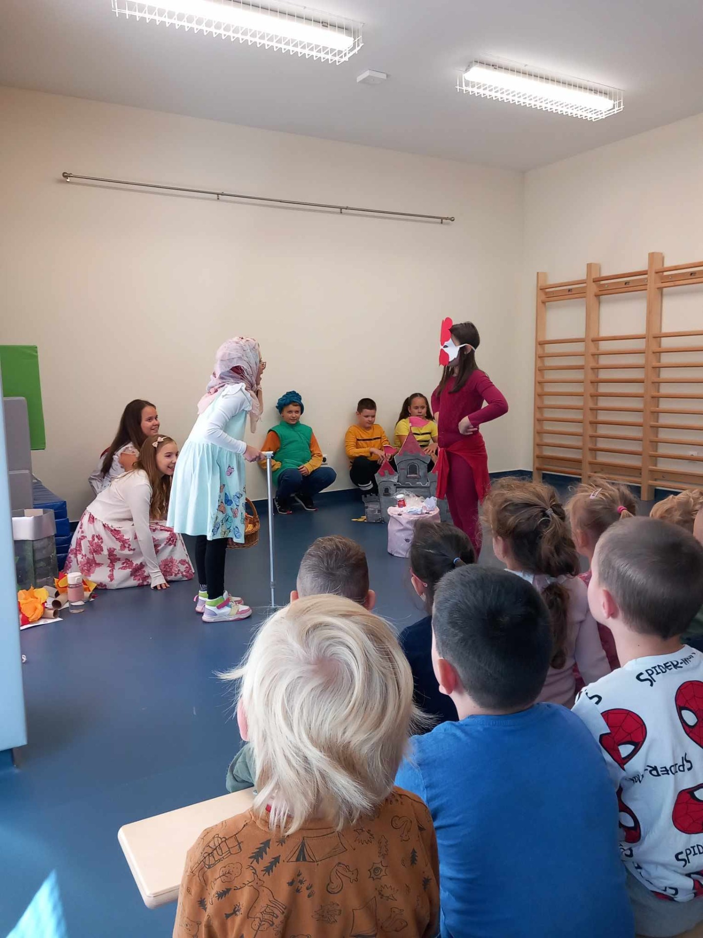 A Népmese világnapja alkalmából a Gárdonyi Géza Katolikus Általános Iskola diákjai megajándékozták óvodánk gyermekeit A kiskakas gyémánt félkrajcárja című előadásukkal.