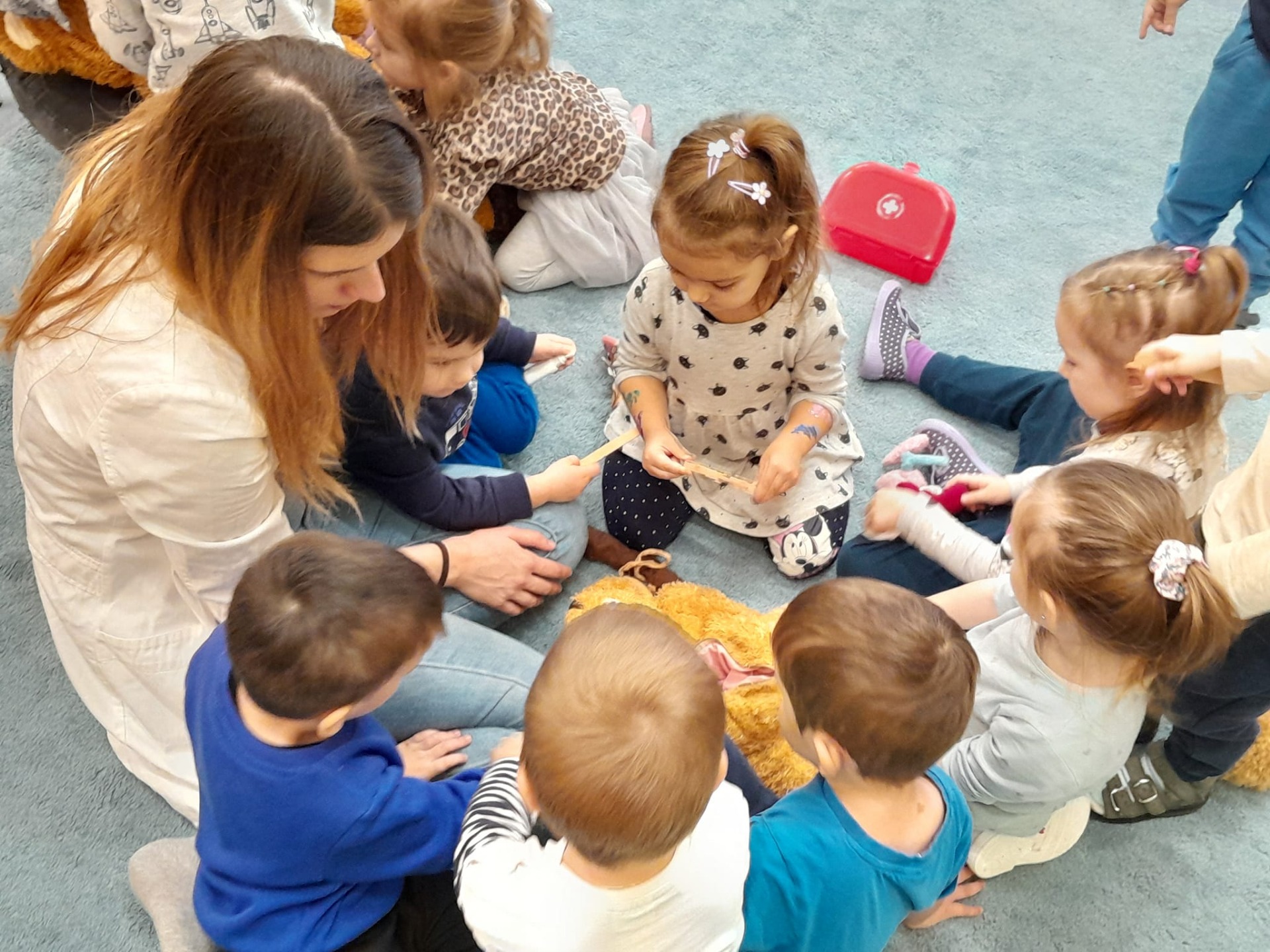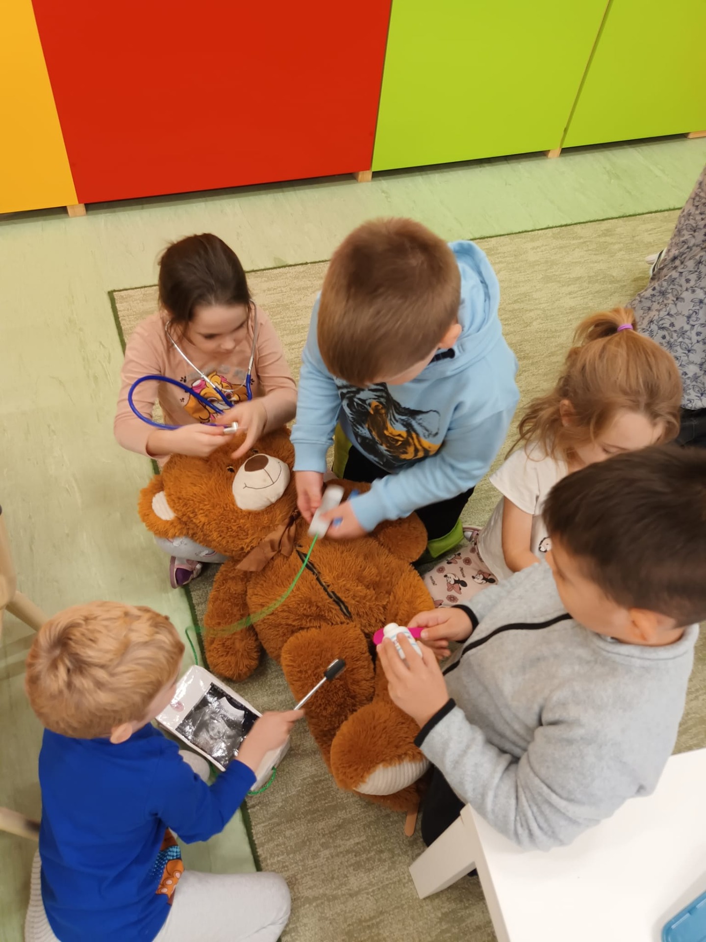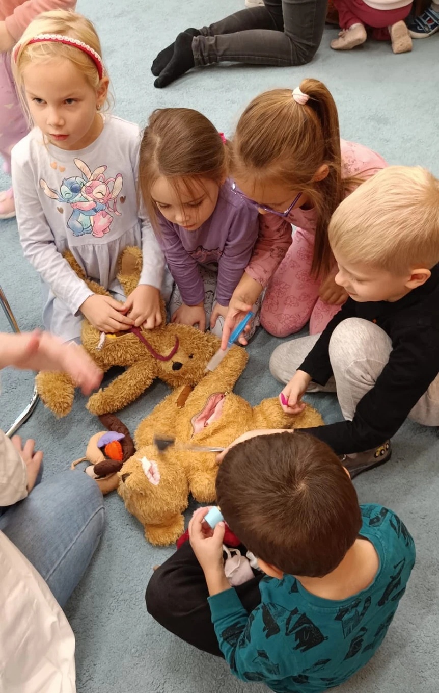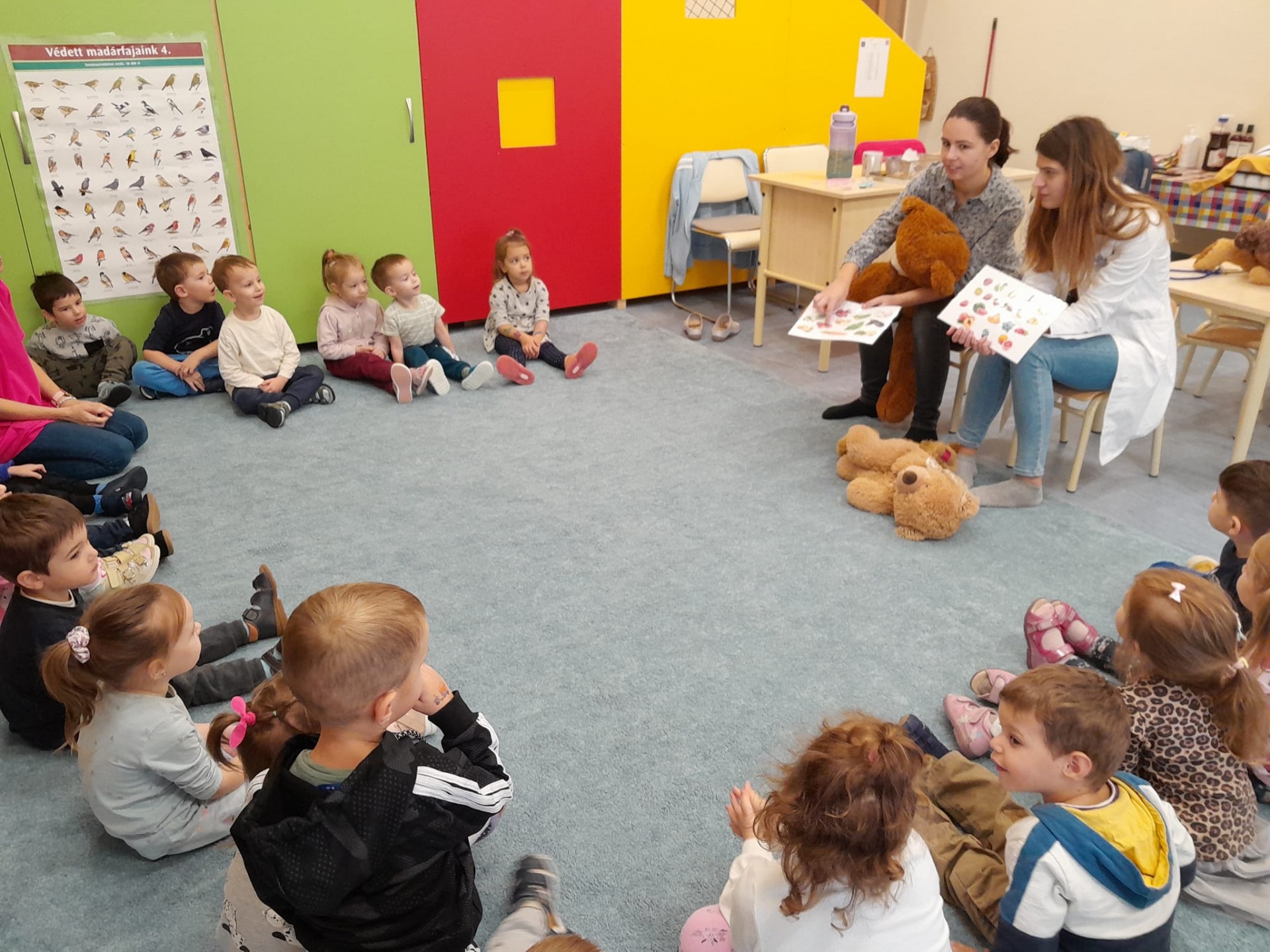 Két orvostanhallgató volt a vendégünk a Teddy Maci kórház által. Beszélgettek a gyermekekkel az egészséges étkezésről, a mackók segítségével a testréseinkről és fontosabb belső szerveinkről is. Végül az óvodásaink maguk is kipróbálhatták a gyógyítás örömét.