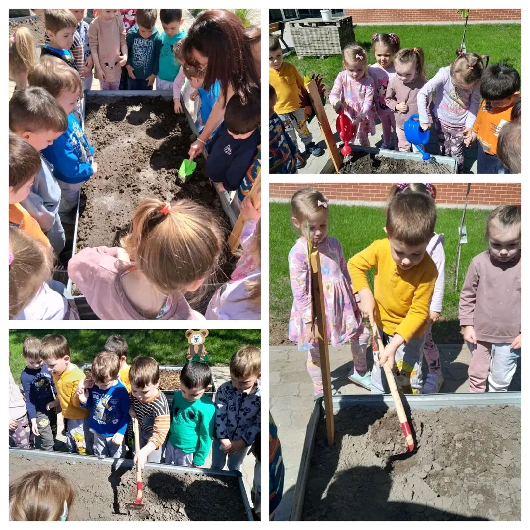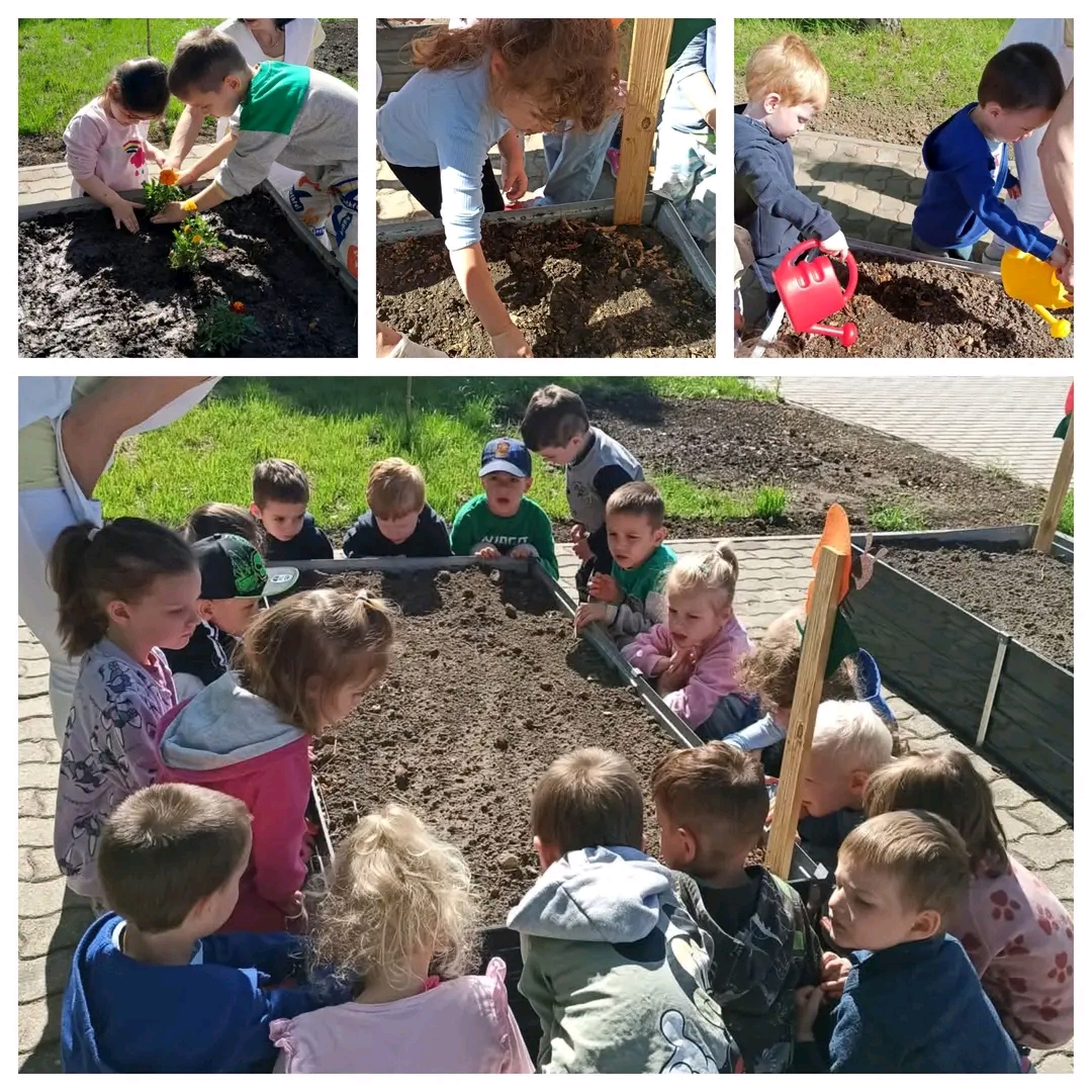 Ma délelőtt minden csoportunk birtokba vehette a magaságyását. Egy kis kapálás, gereblyézés után a földbe kerültek a hagymák, és a különböző magok, melyeket meglocsoltunk. Naponta fogjuk figyelni, locsolni és már alig várjuk, hogy a termést megkóstoljuk. Délután láttam,hogy a gyerekek nagy örömmel mutatták szüleiknek, és lelkesen meséltek az ültetésről. Ezúton is köszönjük a szülőknek, hogy segítették és támogatták ezt a kezdeményezést.