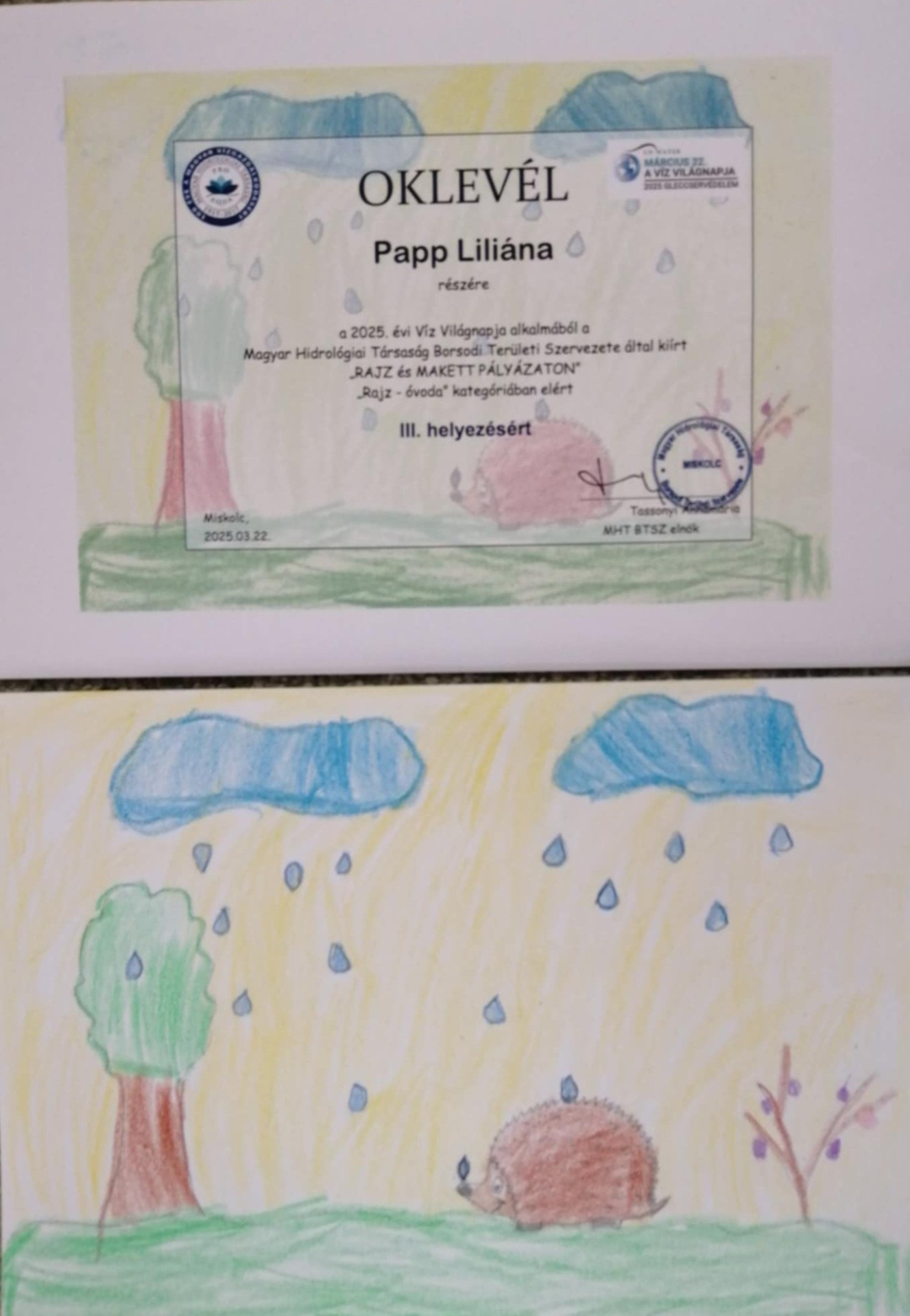 Óvodásaink a Magyar Hidrológiai Társaság Borsodi Területi Szervezete által kiírt "RAJZ ÉS MAKETT PÁLYÁZATON" szép eredményeket értek el.