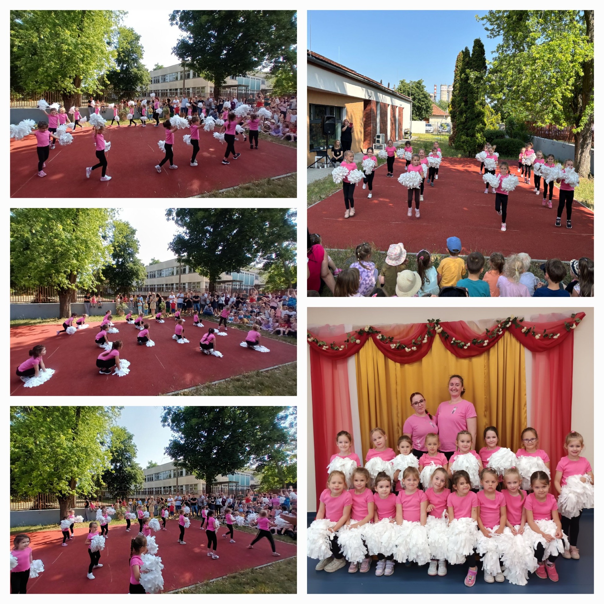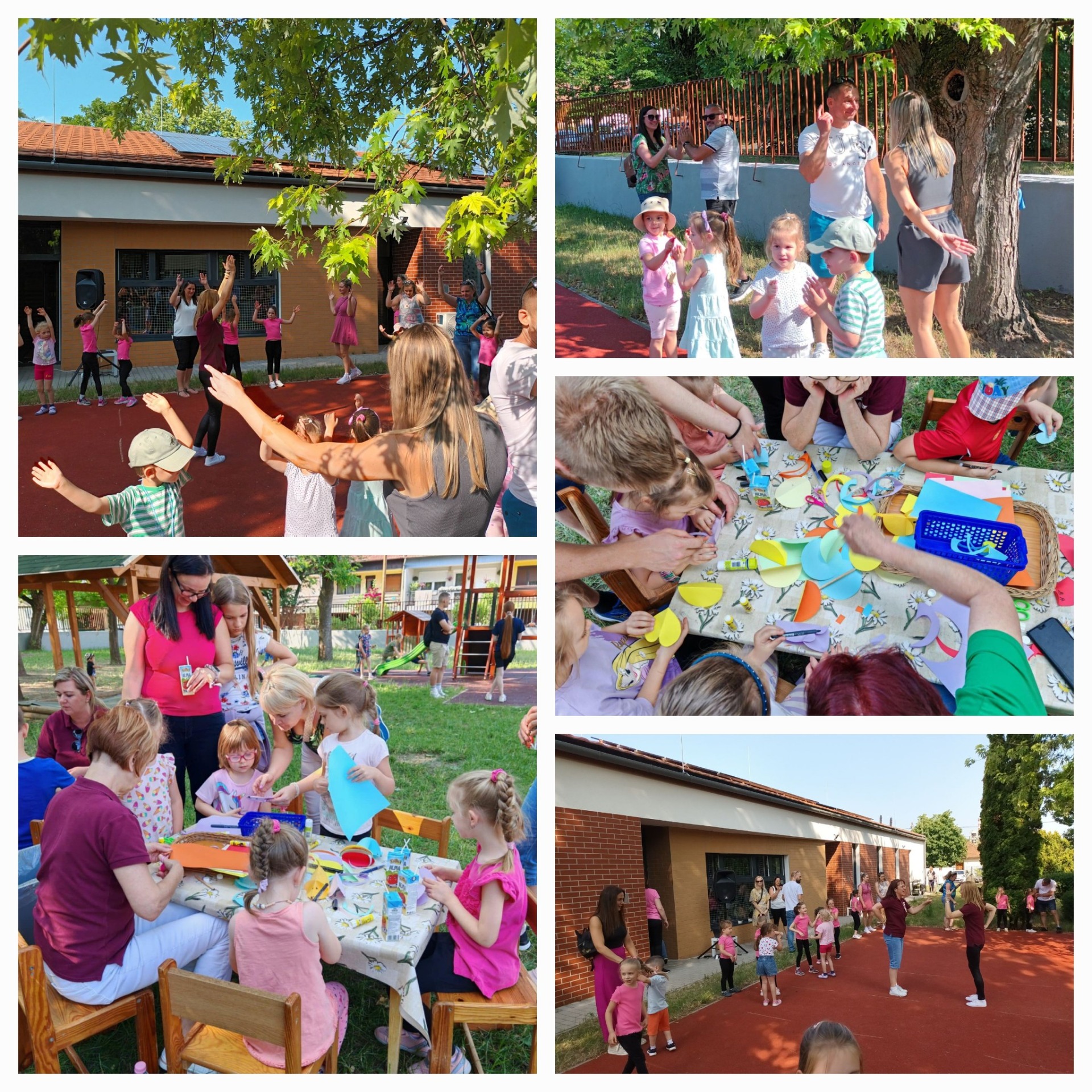 Családi napot tartottunk ma délután óvodánk udvarán. A program megnyitásaként láthatta a közönség mazsorett csoportunk táncát, melyet pom-pommal adtak elő a lányok. Utána az óvoda munkatársainak pom-pom előadása szórakoztatta a közönséget, majd a Maci csoport ballagóinak esernyős tánca aratott sikert. A családtagok együtt vehettek részt egy táncházon, kézműveskedhettek, bogarakat kereshettek, sportolhattak. Köszönjük a Felsőzsolcai Önkéntes Tűzoltó Egyesületnek, hogy a gyerekek megnézhették, és kipróbálhatták a tűzoltó autót. Aki megéhezett, megszomjazott a büfében talált finomságokat.bKöszönjük, hogy ilyen sokan eljöttek, és egy önfeledt délutánt töltöttek velünk!
